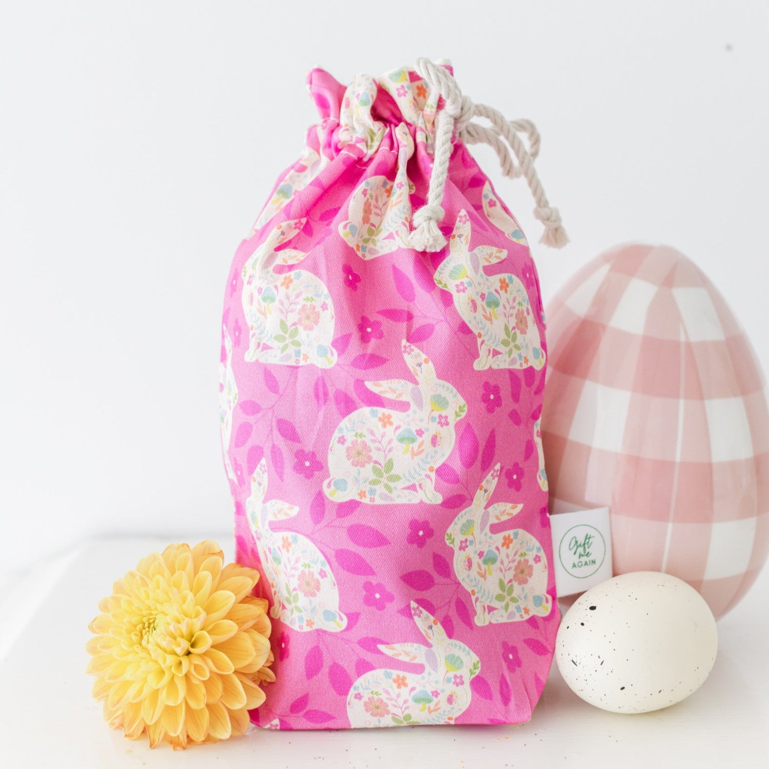 I'm a reusable fabric gift bag made with love. Although I have been made especially for Easter, I can be loved all year round, as after all bunnies never lose their cuteness.